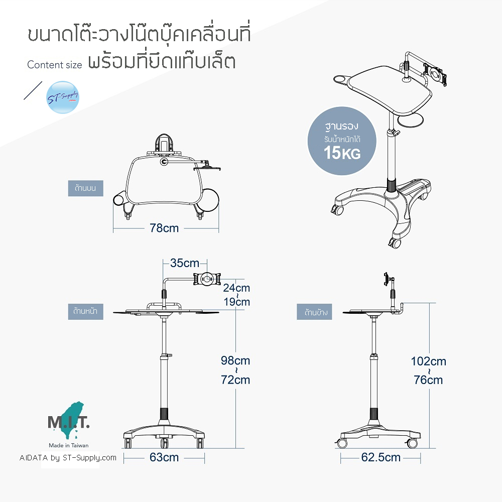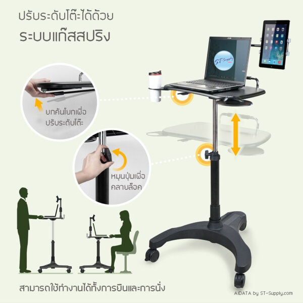 โต๊ะวางโน๊ตบุ๊คเคลื่อนที่ พร้อมที่ยึดแท็บเล็ต รุ่น LPD502P / Tablet and Laptop Cart